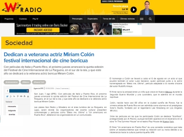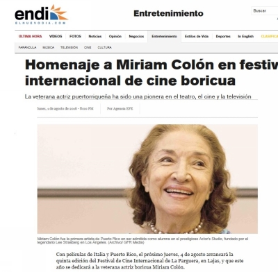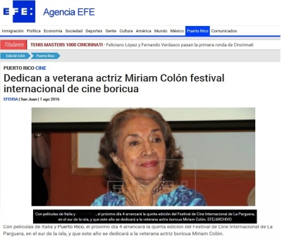 Dedican la Quinta Edición del Festival de Cine Internacional en La Parguera de Lajas a la conocida actriz Miriam Colón